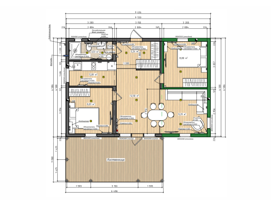 минеральная вата в основании - 150мм, утеплитель минеральная вата в каркасе - 150мм, утеплитель минеральная вата в крыше - 200 мм